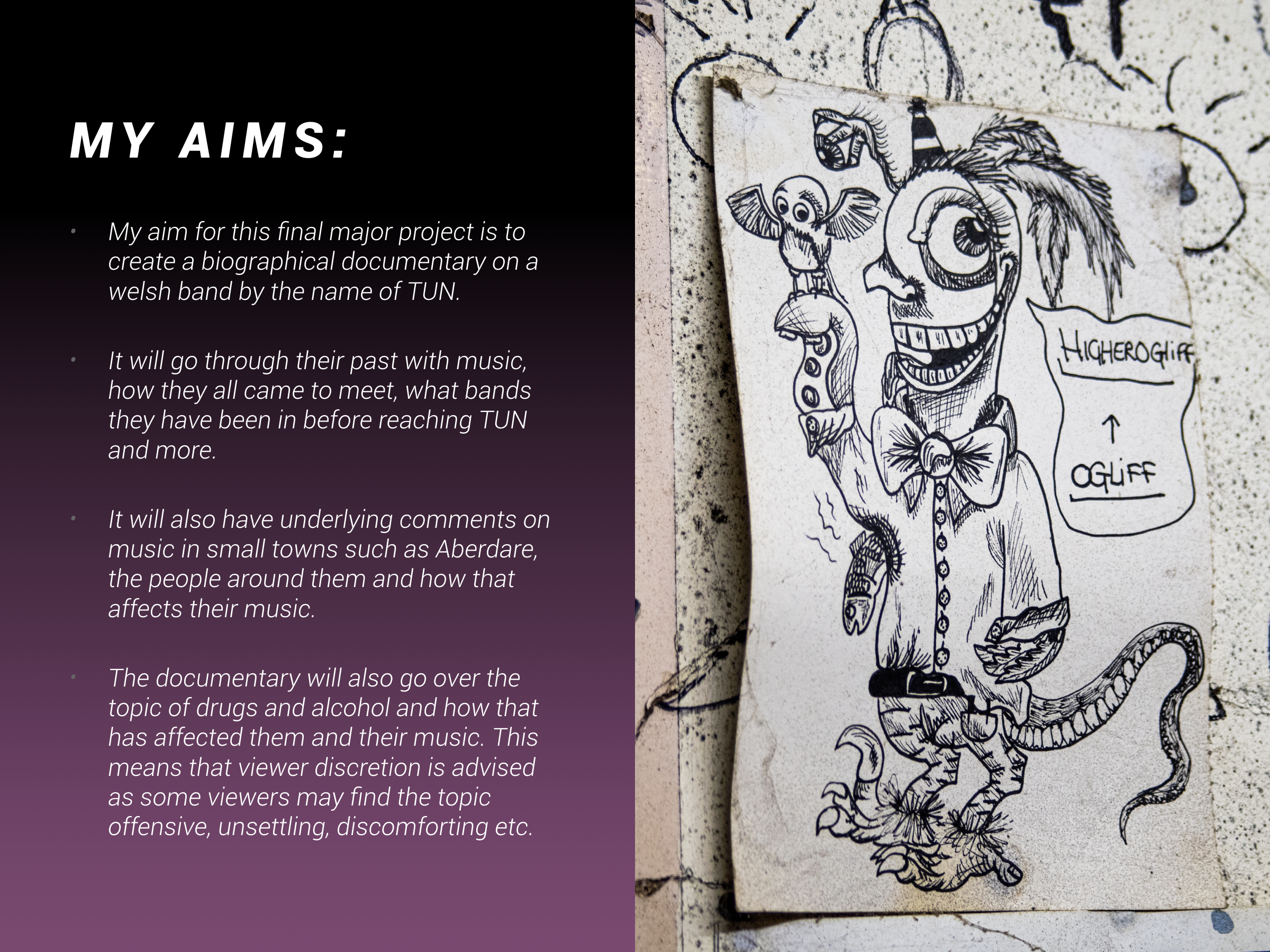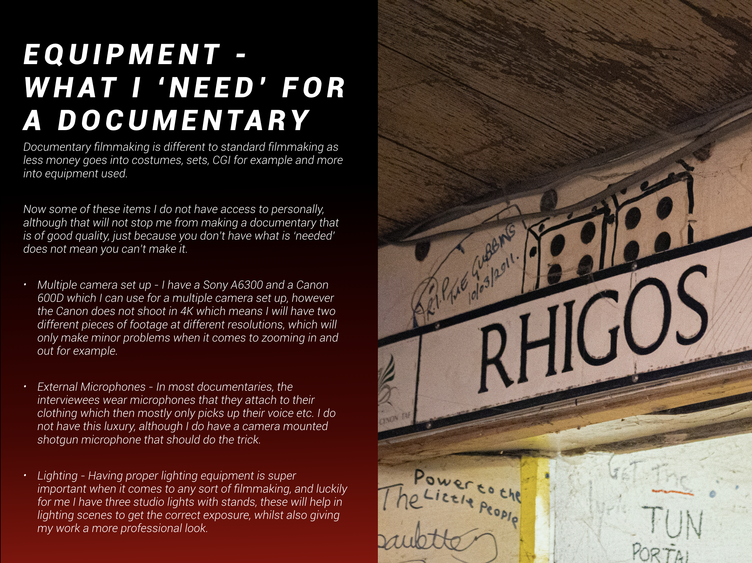 Today I began creating my proposal for my final major project where I talked about the past 2 years on this course, how I have improved etc, and then I also started writing my project concept where I went over what the documentary consisted of in a basic form.