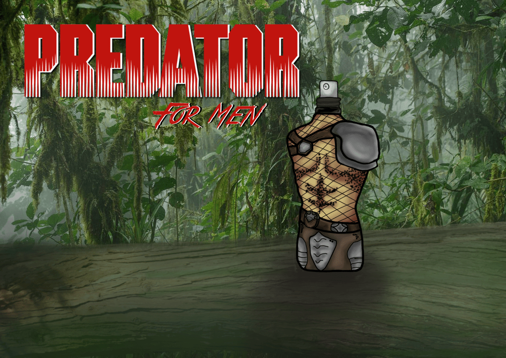 When it came to creating this cologne we were given a lesson to create the idea, decide our target audience, bottle design etc. Because of this me and Dan decided, due to the cologne being called Predator, to make it a limited edition Predator themed cologne where the cologne bottle would be shaped and designed as the torso of the Predator you see in the films and the lid itself would be the helmet and because of its limited edition, it could become a collectors item and we could have multiple types, with different designs of different predators from the films. I sketched a quick design from memory of what the Predators torso looked like in the shape of a cologne bottle and then create a similar design on Photoshop whilst also adding other pieces onto the design to make it pop more. All in all I actually enjoyed this task and feel that the final piece turned out well, however if I had more time to complete it, it would have turned out looking more complete and I could put the lid onto the poster as well.
